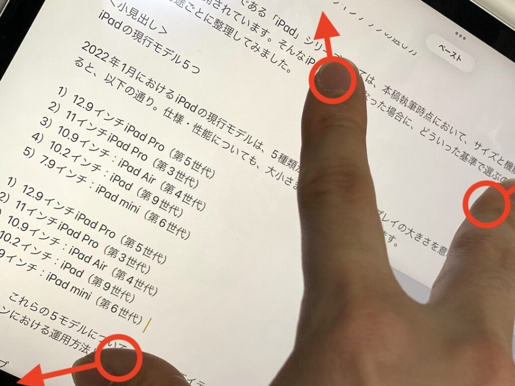 - 拡大: ピンチアウト操作で、画像や文字を大きく表示できます。これにより、小さな文字が読みやすくなる。