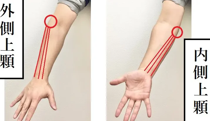 - 肘の内側や外側に感じる痛み