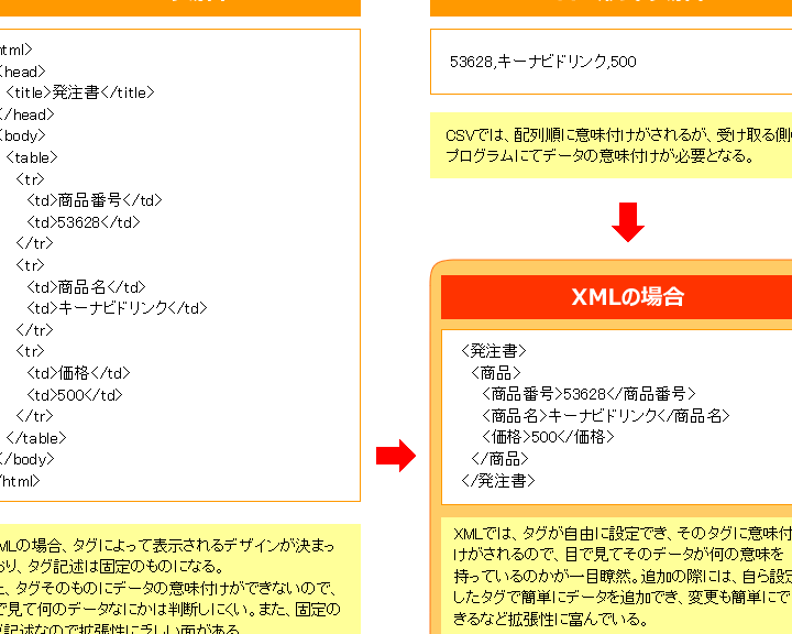 - 柔軟性: XMLはカスタマイズ可能で、特定の用途に適したタグを作成できます。これにより、データの意味を明瞭に表現できます。