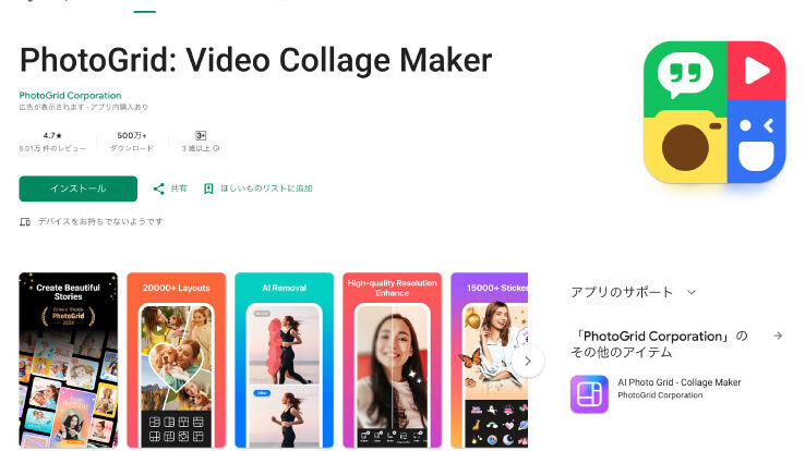 - Collage Maker:シンプルなインターフェースで、初心者にも扱いやすいアプリです。