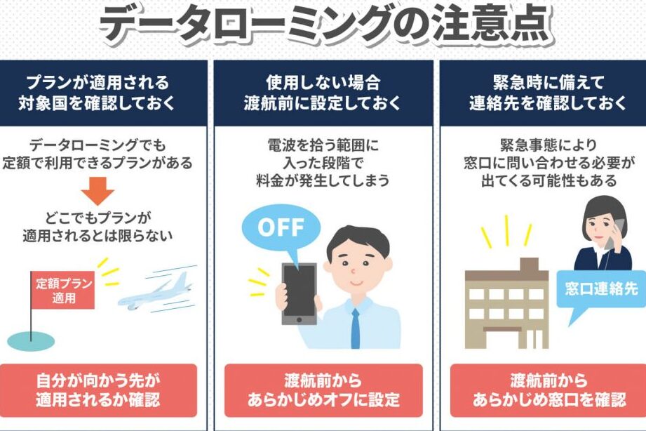 データローミングを利用する際、以下の点を意識しましょう。