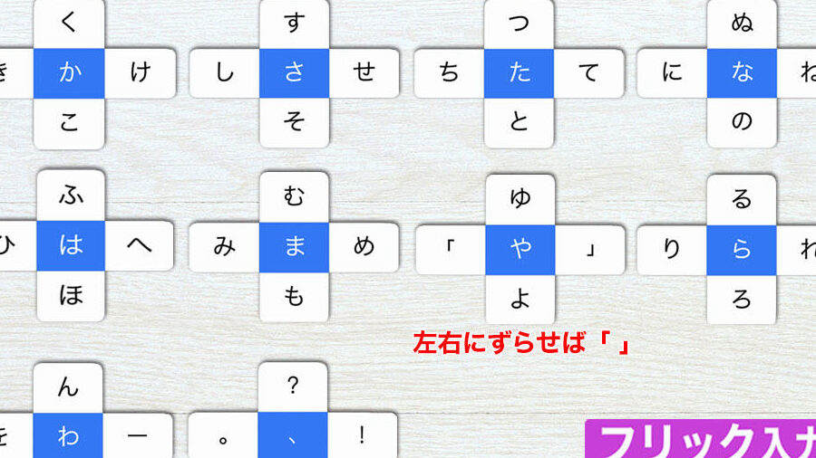 - 仕組み: 短いスワイプをすることで、異なる文字を選択します。例えば「か」を入力したい時、特定のキーをフリックすることで簡単に入力できます。