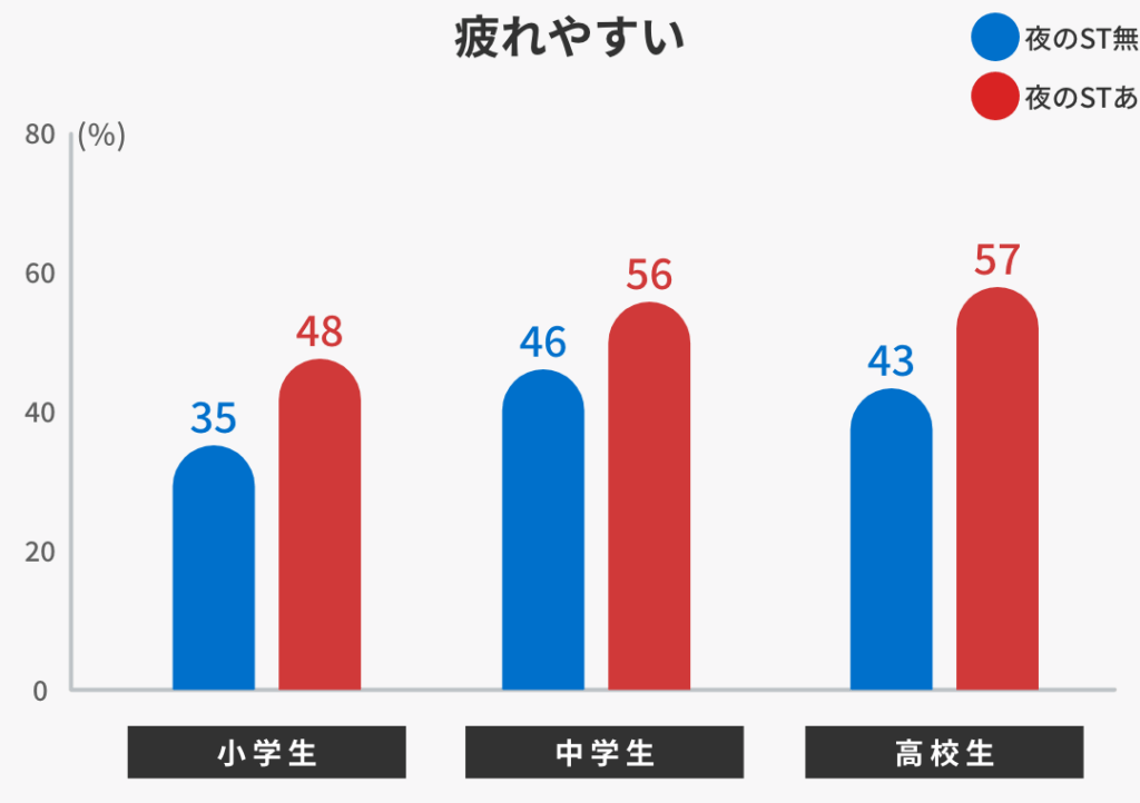 - 睡眠不足: 若者のうち57%が、睡眠不足を感じていると報告しています。
