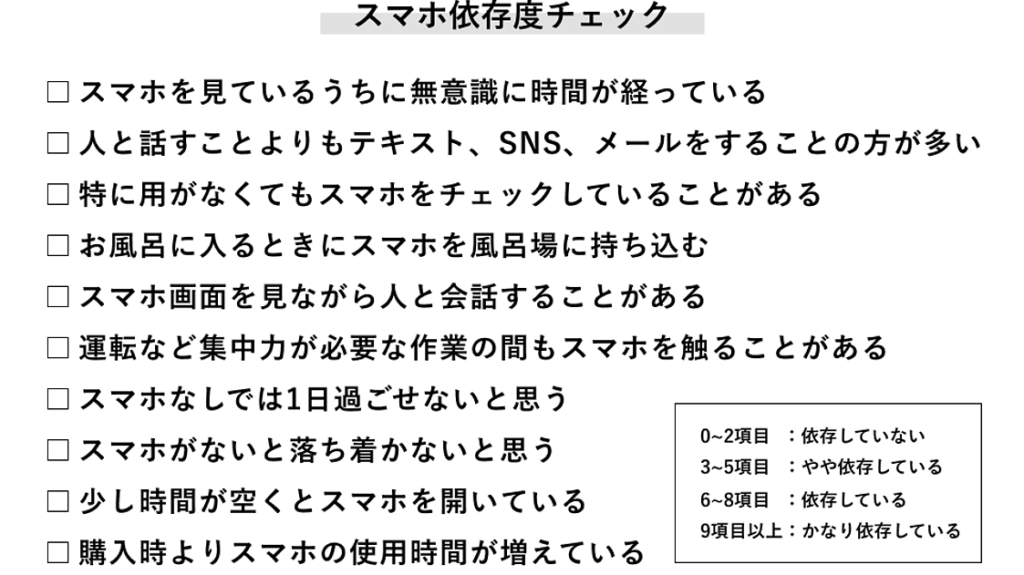 また、スマホ依存症は身体的健康にも影響を及ぼすことがあります。長時間画面を見続けることで目の疲れや姿勢の悪化が生じる可能性があります。気になる点については、明確に認識することが重要です。