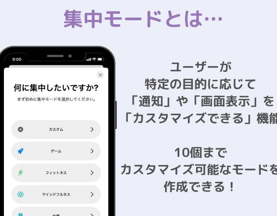 集中モードは、私たちがタスクに集中できるように設計された機能です。この機能を使うことで、スマホの通知やアプリの干渉を最小限に抑え、効率的な作業環境を簡単に整えられます。