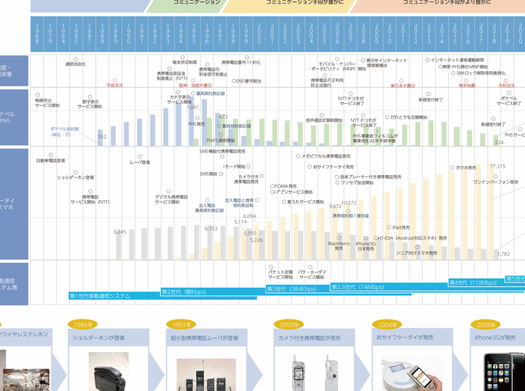日本では、2007年に初めてiPhoneが登場し、スマートフォンの普及が始まりました。この時期に、携帯電話は従来の機能から大きく進化した。 その後、Androidスマートフォンも登場し、各社から多様なモデルが発売されました。具体的には、2011年にはスマートフォンの市場シェアが30%を超え、2015年には50%以上に達しました。これにより、スマートフォンの利用者数は急増しました。