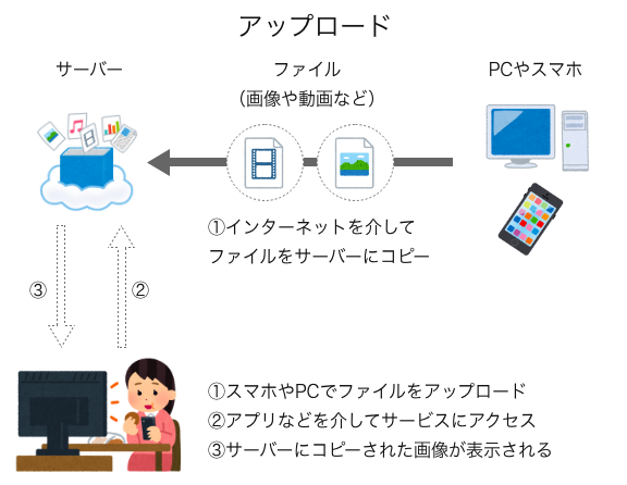 アップロードとは、デバイスからインターネットへのデータ転送のことです。スマホを使ってのアップロードには、さまざまな形式があります。例えば、以下のようなデータを挙げられます。