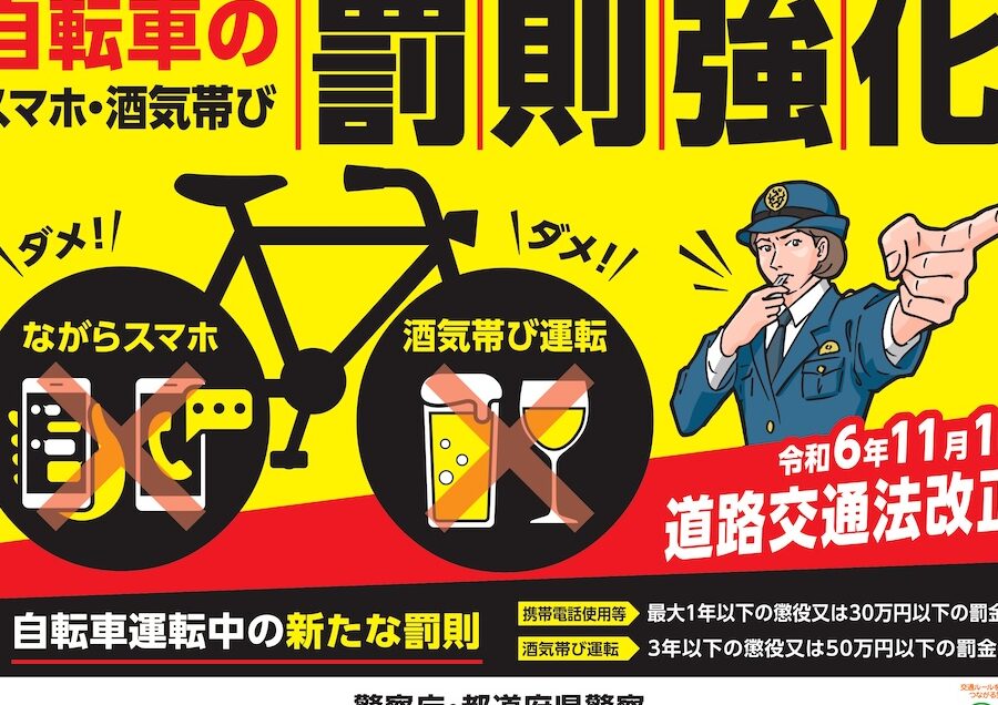 自転車を利用する人が増加し、スマホの利用も日常的になってきました。このため、安全確保のために罰則の導入が必要とされています。
