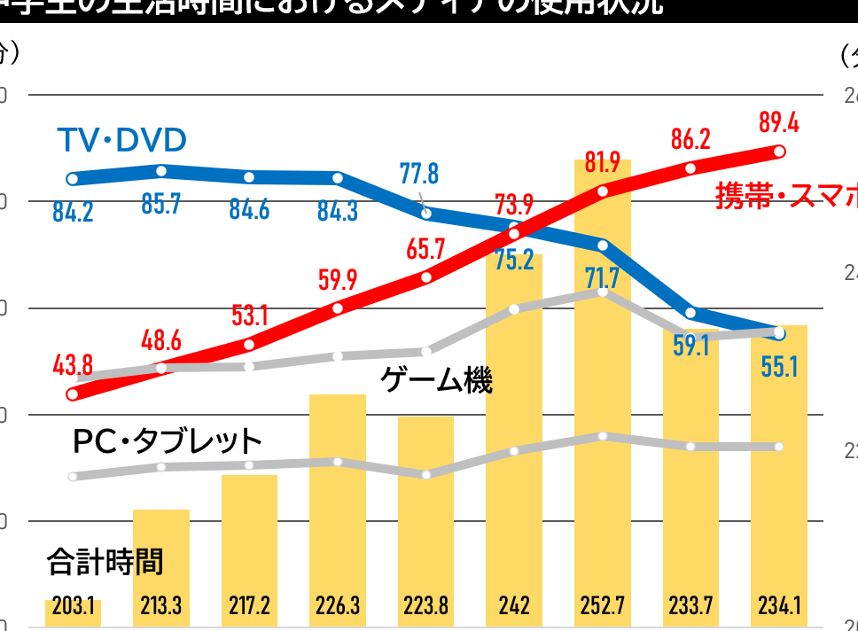 - 15〜29歳の若者、平均使用時間が1日約4時間