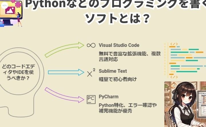 - Python: シンプルで学びやすく、AIやデータ解析に活用。