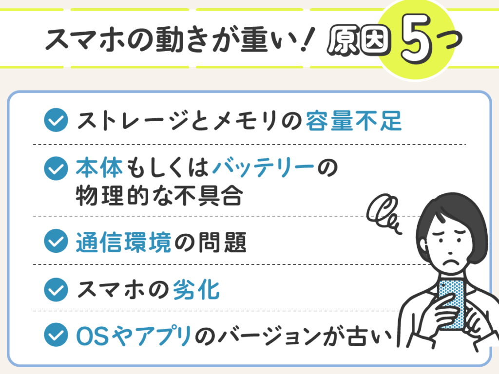 スマホが重くなる理由はいくつかあります。これらの原因を理解することで、対処法を見つけやすくなります。