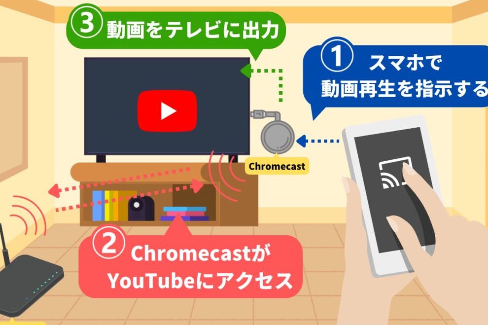 次に、ワイヤレス接続を利用する方法があります。たとえば、Chromecastを使うと、スマホから簡単に動画をテレビにストリーミングできます。ChromecastをテレビのHDMI端子に接続し、アプリから選択するだけです。