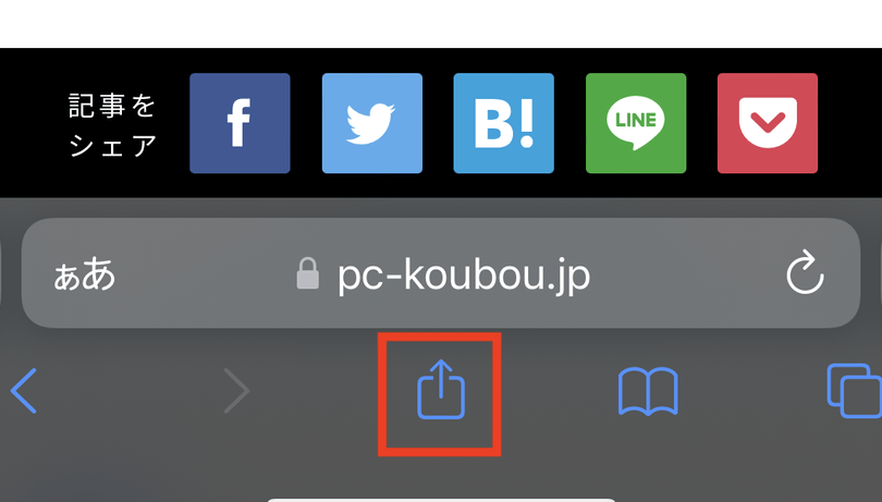 - ブックマークの追加: ページを表示中に共有アイコンをタップし、「ブックマーク」を選択。