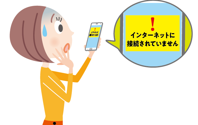 - モバイルデータ:信号エリア外であったり、一時的な障害が発生している可能性があります。