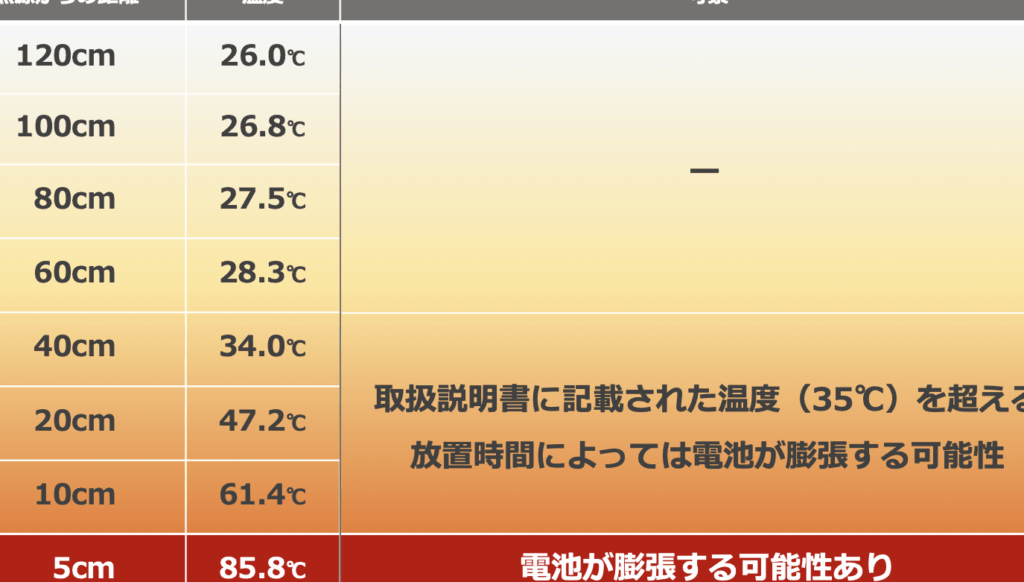 - 膨張:極端な過熱によってバッテリーが膨張し、安全性を損ねる。
