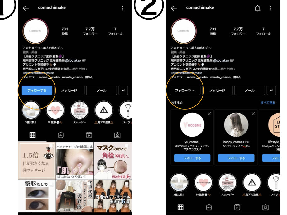 - フォローボタンをクリック: 対象となるアカウントのプロフィールページに移動し、「フォロー」ボタンを押すことで、そのアカウントをフォローします。