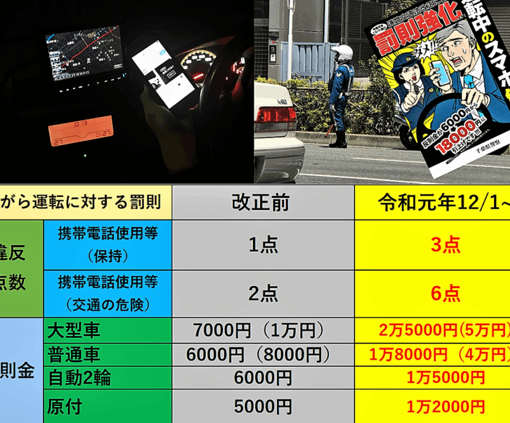 - 運転中のスマホ使用: 違反した場合は最大で5万円の罰金が科せられる可能性があります。