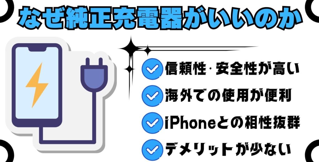 この表からわかるように、「なぜスマホの充電器は純正がいいのですか?」という問いへの答えとして、安全で信頼できる選択肢として純正品を推奨する理由はいくつも存在します。
