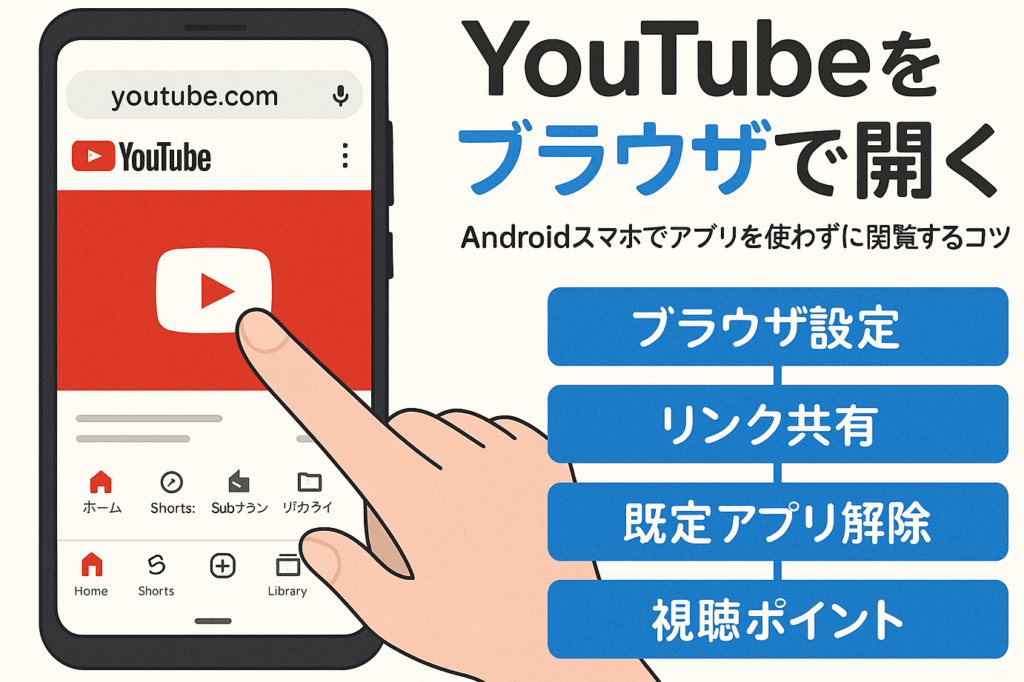 - ブラウザでYouTubeへアクセス: スマホブラウザ(例:Chrome, Safariなど)からYouTubeサイトへ行きます。