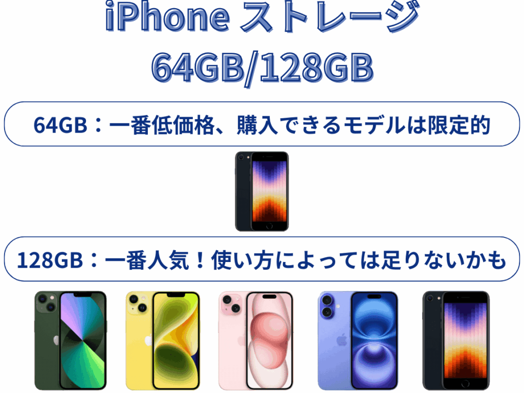 この容量は主にライトユーザー向けで、SNSやウェブブラウジング、軽いアプリを使う方に適しています。ただし、高解像度の写真や動画を頻繁に撮影する場合は厳しいかもしれません。以下のモデルがおすすめです: