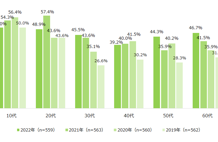 - 30代:60%がSNSを定期的に使用。