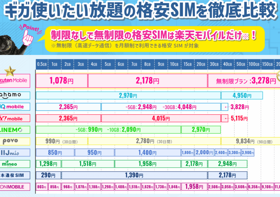 上記の表を見ると、各社の月額料金やデータ容量にはそれぞれ特徴があります。例えば、auは3GBから利用可能で、多様なプランが揃っています。一方で、SoftBankは少し高めですが、大容量プランも用意されています。また、NTTドコモも競争力のある価格設定をしています。