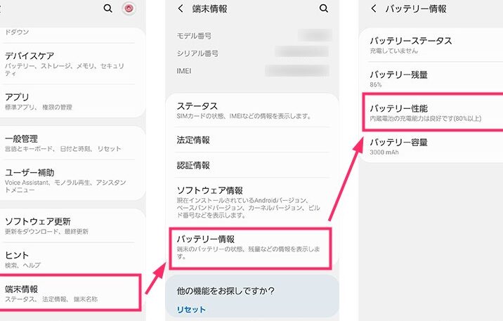 スマホバッテリー寿命のパーセントを確認する方法