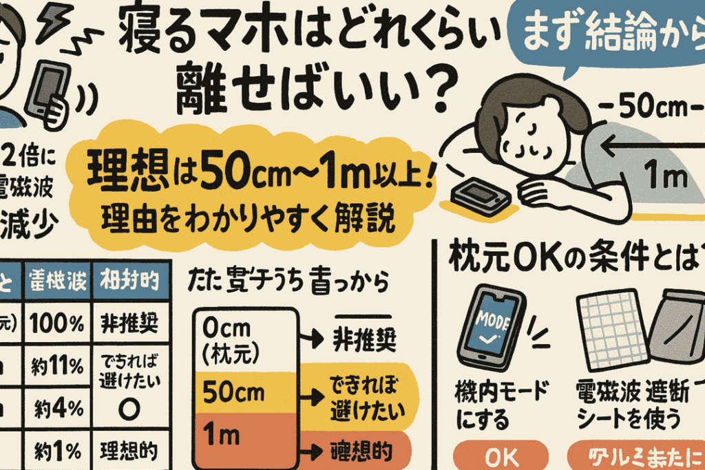寝る時にスマホをどれくらい離せばいいですか?の正しい距離