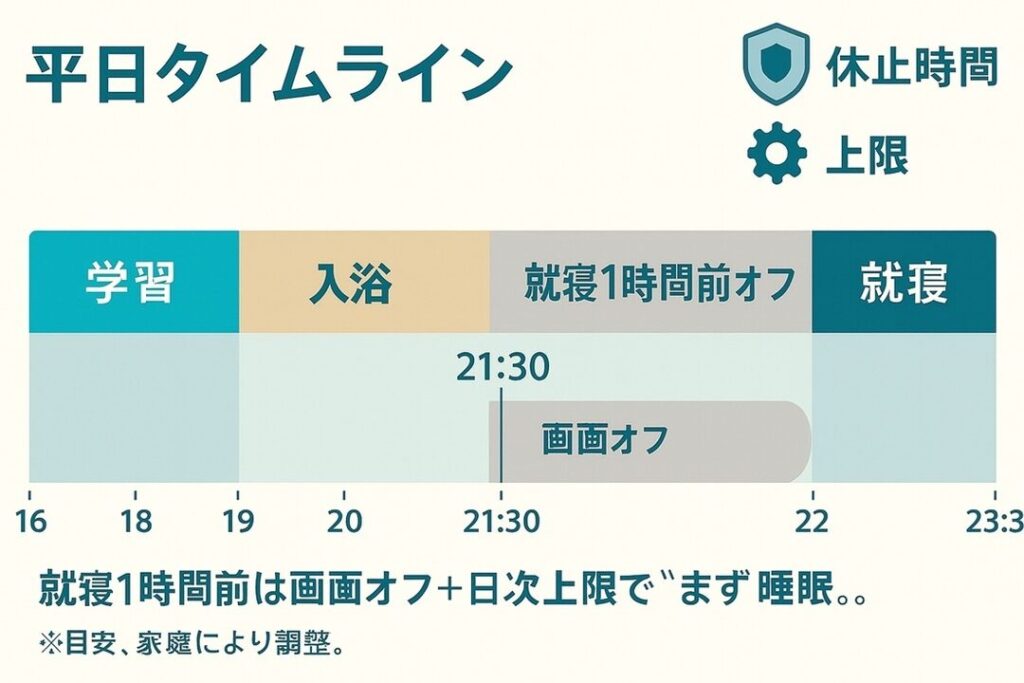 - 設定機能の活用: スマートフォンには「スクリーンタイム」など、使用時間を制限する機能があります。この機能を使って、特定のアプリや全体で1日の使用上限を設けることができます。