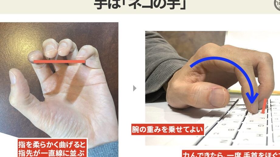 - 疲労軽減: 適切な手首や腕のポジションを保ちながら打つことは、長時間使用時の疲労感を軽減します。