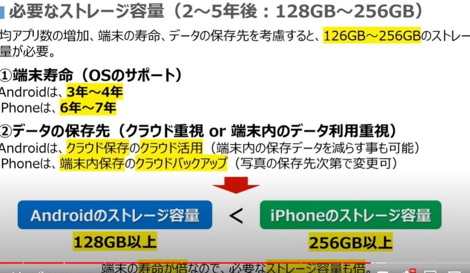 スマホ128GBのストレージ容量とデータ保存量について