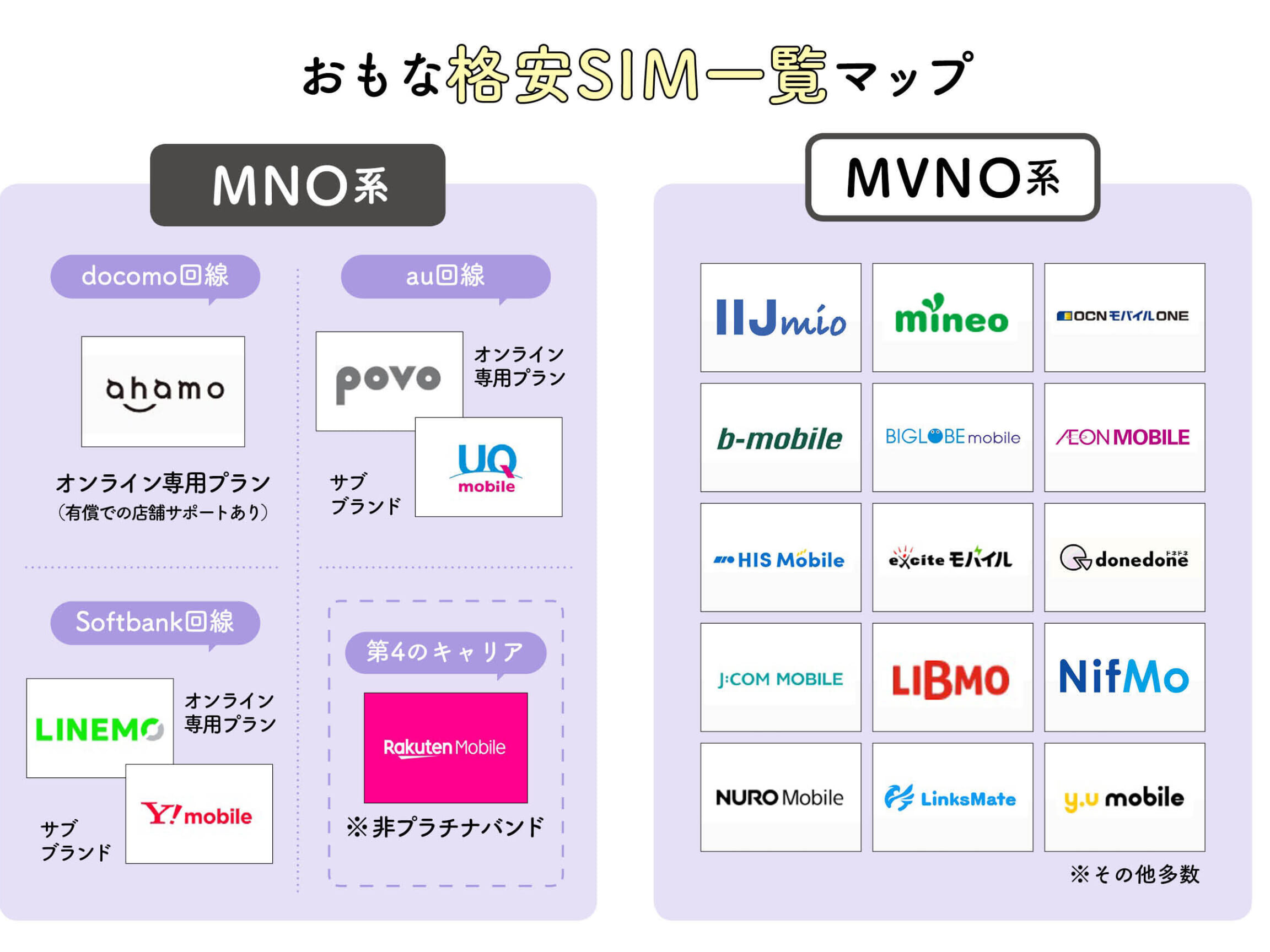 スマホ回線はどこがいい?主要キャリアと格安SIM比較